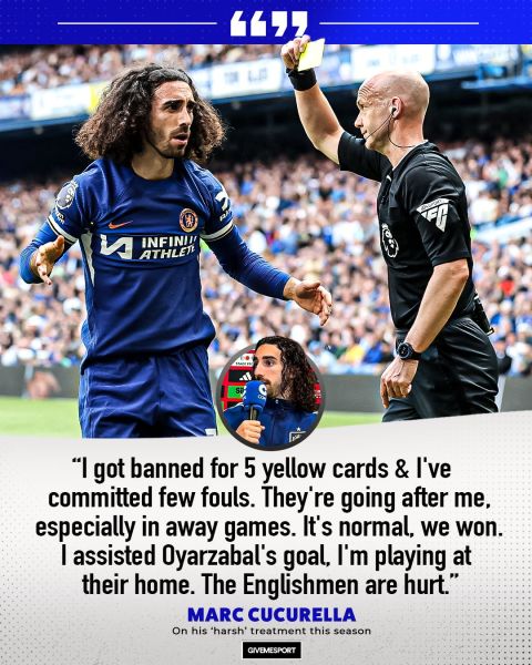 Ο Μαρκ Κουκουρέγια θεωρεί ότι οι Άγγλοι διαιτητές ακόμα δεν έχουν ξεπεράσει ότι εκείνος και η Ισπανία νίκησαν τα «λιοντάρια» και πιστεύει ότι αυτός είναι ο βασικός λόγος που βλέπει φέτος ακόμα πιο εύκολα τη μία κίτρινη κάρτα πίσω από την άλλη!