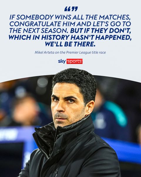 Ο Μίκελ Αρτέτα επισήμανε μεταξύ άλλων ότι εκείνος και οι παίκτες του θα είναι έτοιμοι για όποιο στραβοπάτημα γίνει από το σύνολο του Άρνε Σλοτ και σκοπός των Λονδρέζων είναι να το πάνε μέχρι… τέλους για να πάρουν ό,τι καλύτερο από αυτή την κούρσα τίτλου που έχει ξεκινήσει εδώ και μήνες!