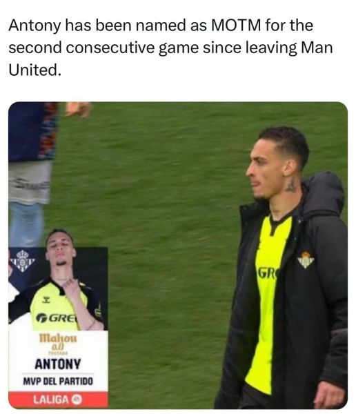 Ο ταλαντούχος επιθετικός έγινε ανέκδοτο μετά από τα πρώτα του παιχνίδια με τη φανέλα των «κόκκινων διαβόλων». Γι’ αυτό τον λόγο πήρε την απόφαση να δώσει τα χέρια με τη Ρεάλ Μπέτις και να αγωνιστεί με τους «βερδιμπλάνκος» ως το τέλος της σεζόν! Ο Άντονι δεν χρειάστηκε αρκετό χρόνο, μέχρι να προσαρμοστεί και ήδη στα πρώτα του δύο παιχνίδια έχει κάνει τη διαφορά με τη νέα του ομάδα.