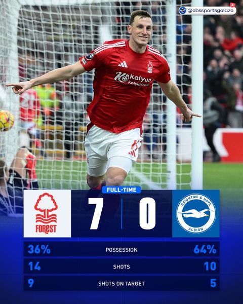 Τελικό αποτέλεσμα: Νότιγχαμ Φόρεστ- Μπράιτον: 7-0