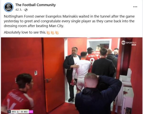 Νότιγχαμ Φόρεστ: Ιδού η φωτογραφία, λίγο μετά την εντός έδρας ήττα της αγγλικής ομάδας επί της Μάντσεστερ Σίτι με πρωταγωνιστή τον Βαγγέλη Μαρινάκη