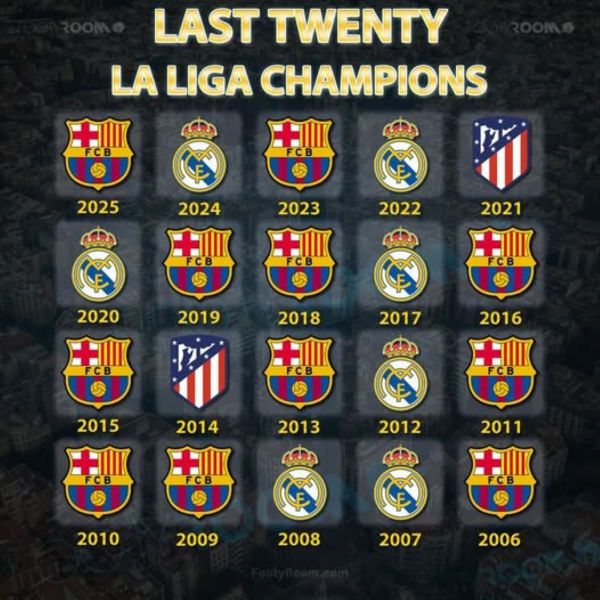 Ρίχνοντας μια γρήγορη ματιά στα στατιστικά των τελευταίων δύο δεκαετιών διαπιστώνουμε πως η Μπαρτσελόνα είναι η κυρίαρχη δύναμη στη La Liga. Οι Καταλανοί με το φετινό μετρούν έντεκα πρωταθλήματα από το 2006 μέχρι σήμερα. Επτά η Ρεάλ Μαδρίτης και δύο η Ατλέτικο.
