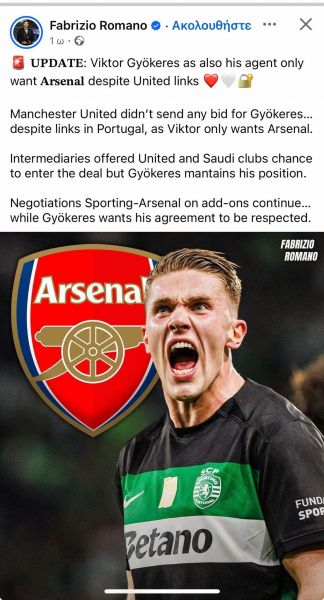 Αλλά τα δεδομένα άλλαξαν εκ νέου. Ο Φαμπρίτσιο Ρομάνο, που γνωρίζει από πρώτο χέρι πράγματα και καταστάσεις, με βραδινό του post επισήμανε ότι η επιθυμία του παίκτη ήταν και παραμένει μία: να συνεχίσει την καριέρα του στους Λονδρέζους. Αυτό είναι το μεγάλο του θέλω. Το μεγάλο του όνειρο. Και είναι κάτι που δεν έχει αλλάξει, μέχρι και σήμερα παρά τις δυσκολίες που υπάρχουν για το μεγάλο deal!