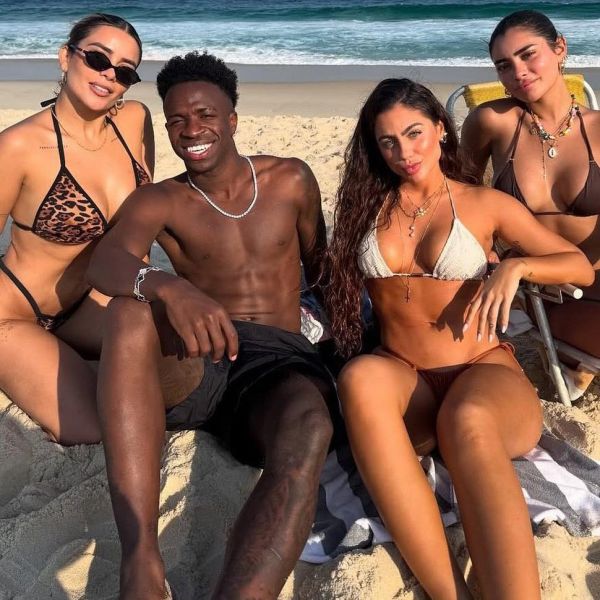 Vini Jr. curtindo um dia de praia no Rio de Janeiro ao lado de influenciadoras após festa de aniversário.