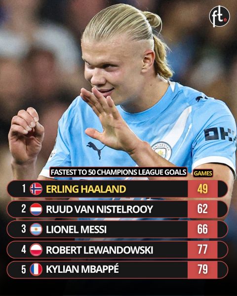 Παίκτες, όπως ο Λιονέλ Μέσι, ο Ρόμπερτ Λεβαντόφσκι, ο Ρουντ Φαν Νιστελρόι. Ή ακόμα και ο Κιλιάν Μπαπέ. Όλο αυτοί πήγαν πολύ γρήγορα στα 50 γκολ. Αλλά ο Έρλινγκ Χάαλαντ τους ξεπεράσε όλους σε ταχύτητα!