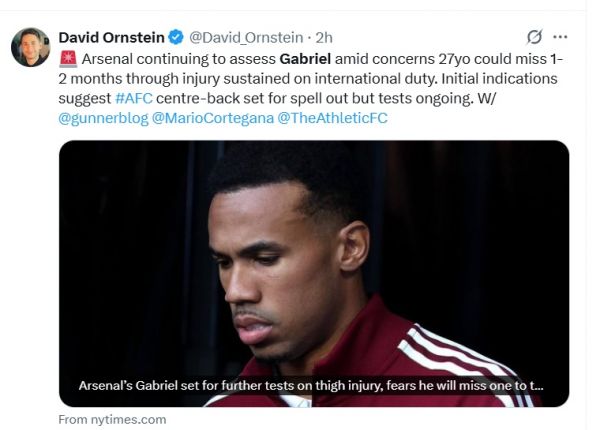 Τραυματισμός Γκάμπριελ: Η Άρσεναλ πήρε από νωρίς τα μέτρα της