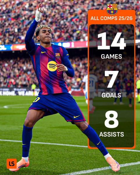 Ο Λαμίν Γιαμάλ έπαιξε σημαντικό ρόλο στη νίκη των Καταλανών επί της Αλαβές με σκορ 3-1. Χάρη σε αυτό ήδη μετράει επτά γκολ και οκτώ ασίστ στα τελευταία 14 ματς των Καταλανών. Νούμερα που μόνο μικρά δεν είναι. Ειδικά αν σκεφτεί κανείς ότι είναι μόλις 18 ετών. Ο νεαρός εξτρέμ θα μπορούσε να έχει και καλύτερα νούμερα. Παρόλα αυτά φέτος έχει ταλαιπωρηθεί αρκετά από μικρούς τραυματισμούς. Κάτι που δεν τον έχει αφήσει να βρει ρυθμό. Γεγονός που αν μη τι άλλο είναι πολύ σημαντικό για την πορεία μέσα στη σεζόν.